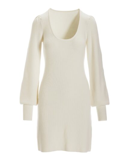 Scoop Neck Balloon Sleeve Sweater Dress Off White