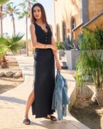 Be the first to review “Ribbed Knit Henley Ruched Maxi Dress Black” Cancel reply