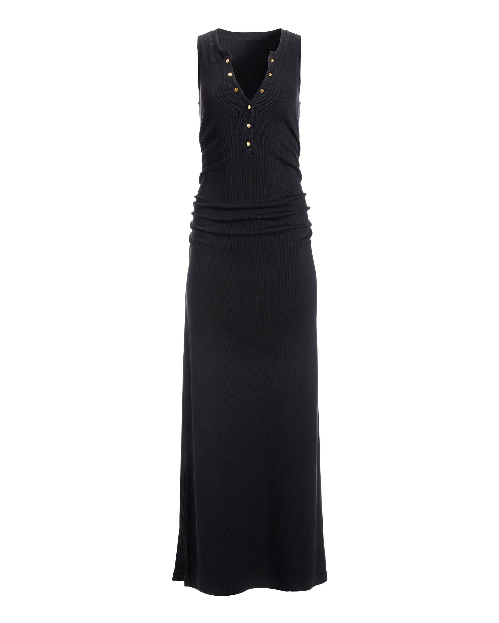 Ruched sides frame your curves in this sleeveless Henley maxi dress, designed in a luxuriously soft and lightweight ribbed knit with a snap-front neckline and leg-baring side slit. Go for a basic look when paired with flats or step it up in stilettos for an evening out. Either way, you’ll want this dress in every color.